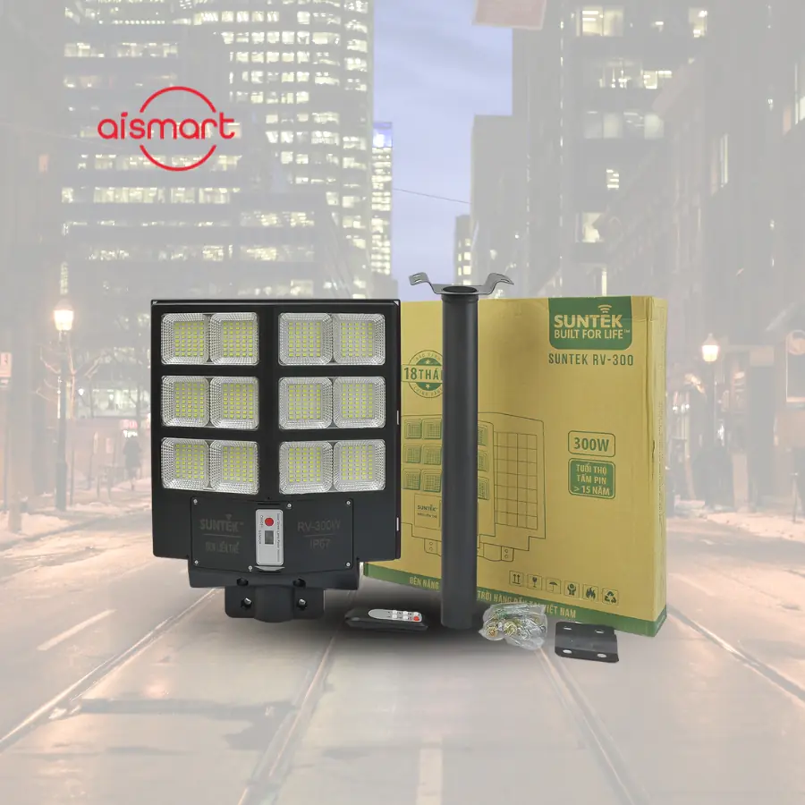 Bộ đèn đường gắn liền tấm pin năng lượng mặt trời công suất 300w. Model: RV-300, hiệu: Suntek
