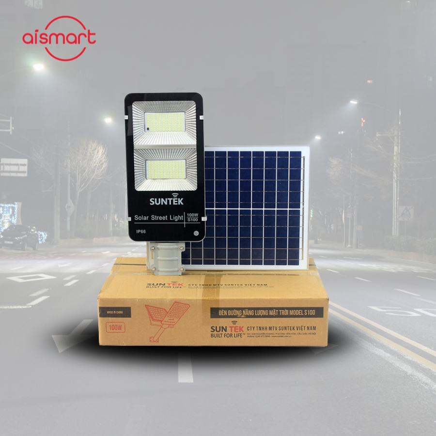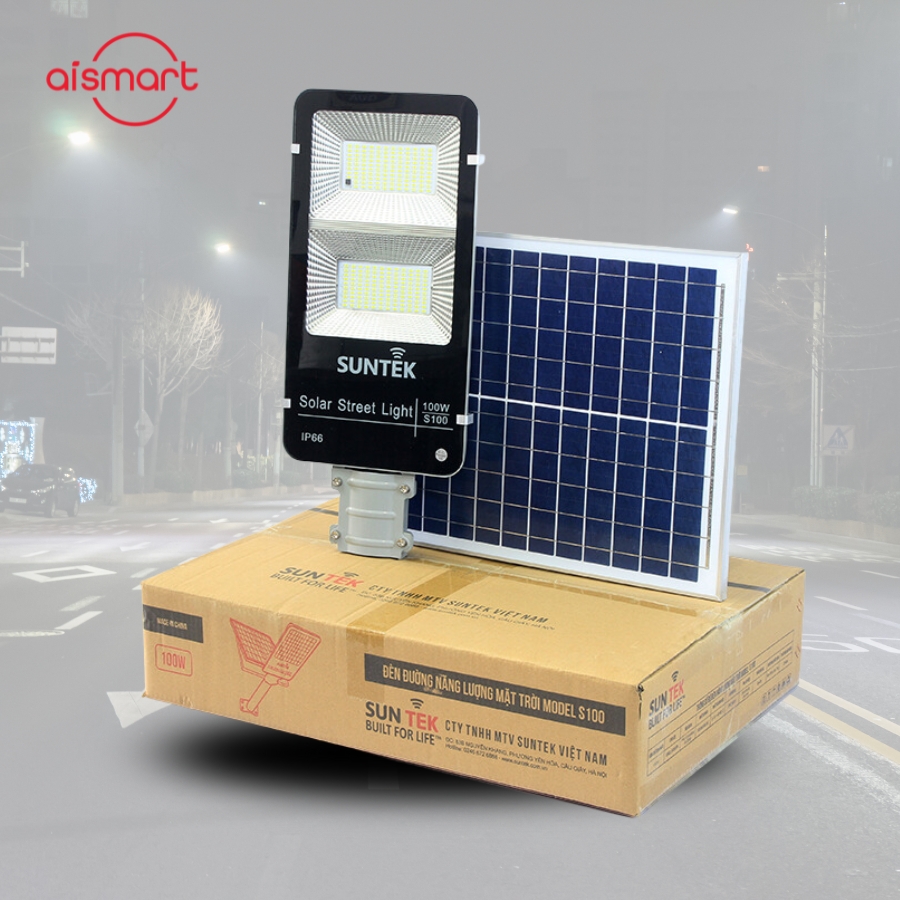 Đèn đường năng lượng mặt trời Model: S100 là giải pháp chiếu sáng tiết kiệm năng lượng và thân thiện với môi trường, sử dụng năng lượng mặt trời để vận hành. Đèn có công suất 100W, sử dụng chip LED chất lượng cao, cho ánh sáng trắng đều, liên tục và tiết kiệm điện. Có khả năng chuyển đổi hiệu quả năng lượng mặt trời thành điện năng. Đèn có chế độ điều khiển thông minh, tự động bật khi trời tối và tắt khi trời sáng, hoặc có thể điều khiển bằng remote.