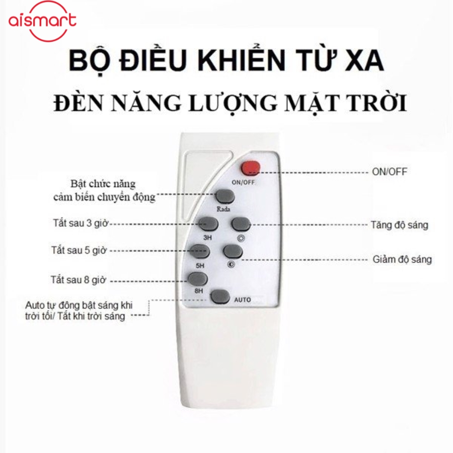 Tích hợp bộ cảm biến ánh sang, tự động bật đèn khi trời tối, tắt đèn khi trời sáng + Có điều khiển từ xa